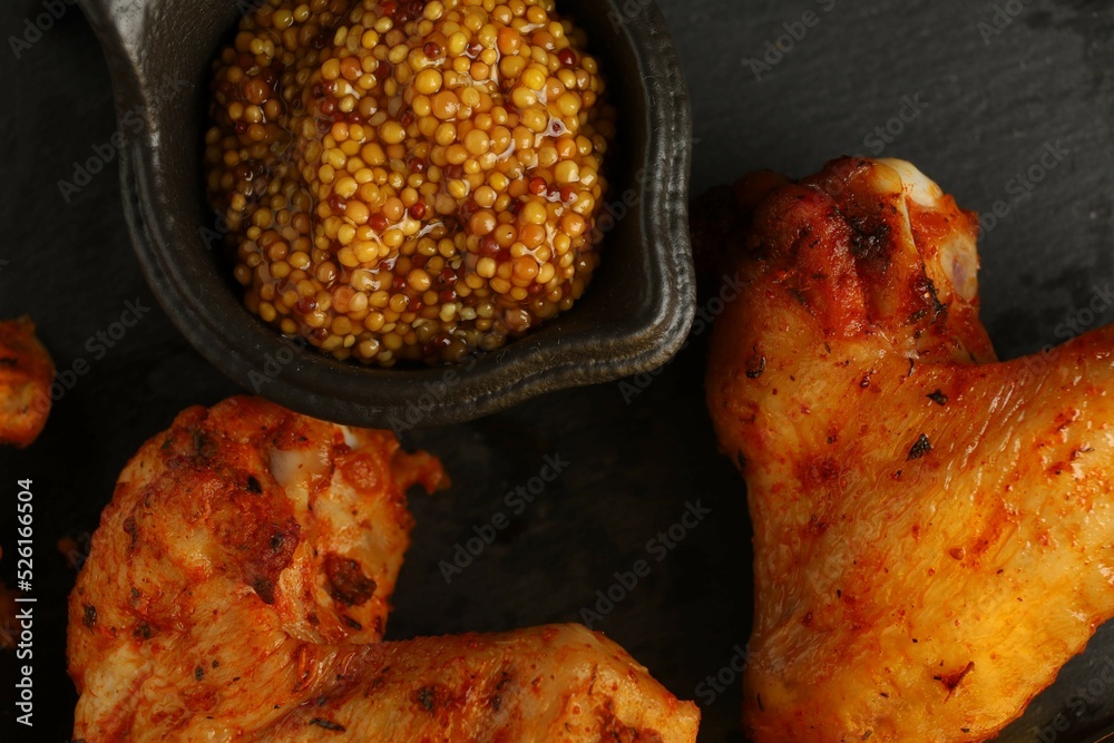 Bbq buffalo wings. Fried chicken on a dark background. delicious grilled chicken wings