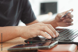 Online shopping concept. Businessman holding credit card and typing on laptop for online shopping and payment makes a purchase on the Internet, Online payment, Business financial and technology.