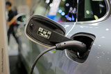 Plug socket charging Electric vehicle EV concept of new technology for automobile vehicles use electricity, typically stored in a battery, to power an electric motor. Charging car is time consuming.