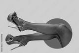 Female legs stacking in round on color geometrical background. Modern design, contemporary art collage. Inspiration, idea, trendy urban magazine style. Negative space to insert your text or ad