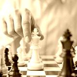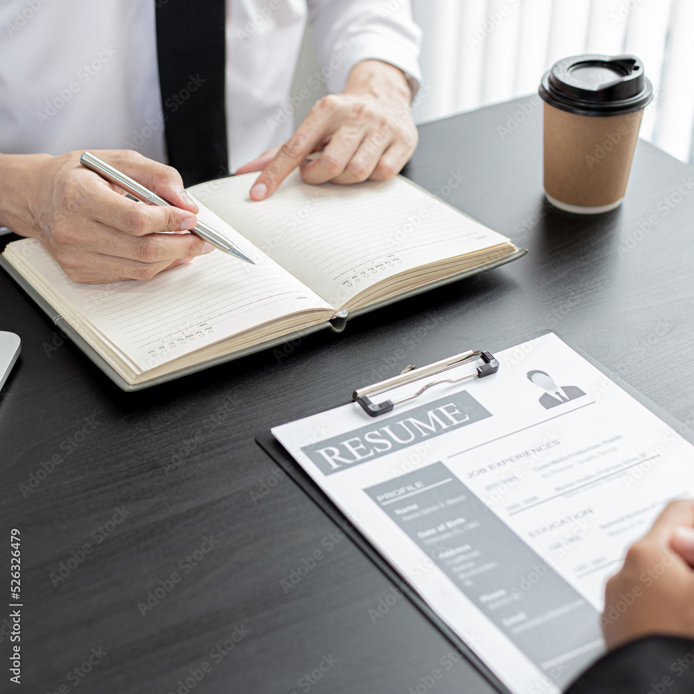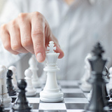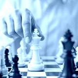 Business men make plans to play chess with Prudence and success, Management or leadership concept.