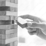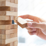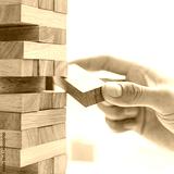 Business people play wooden games, divide the average investment value of a business and jointly manage risks, Alternative risk plan and strategy in business.