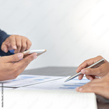 Brainstorm team, Marketers and financial accountants are discussing and analyzing charts to plan strategies to meet customer needs, Computer and tablet technology for business concept.