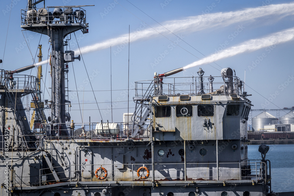 nice shadow play on white wall during summer sunshine.