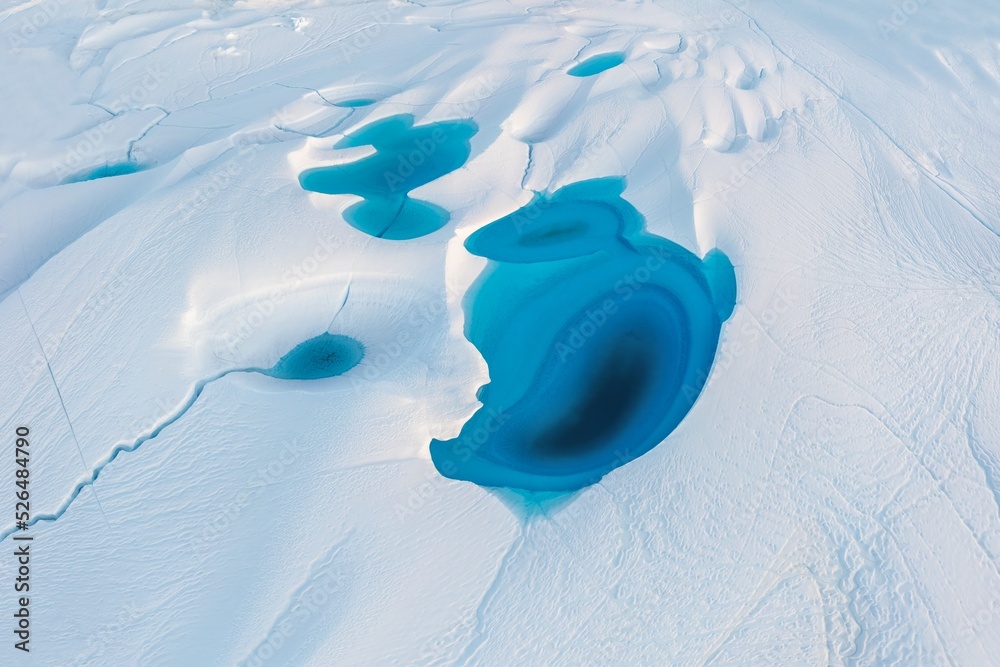 Climate change and global warming. Icebergs from a melting glacier in Greenland. The icy landscape of the Arctic nature in the UNESCO world heritage site. Summer season