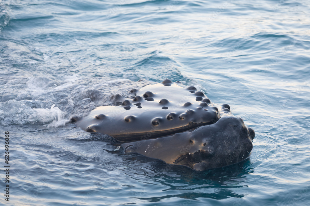 Whale dive near Ilulissat among icebergs. Their source is by the Jakobshavn glacier. The source of icebergs is a global warming and catastrophic thawing of ice, Disko Bay, Greenland