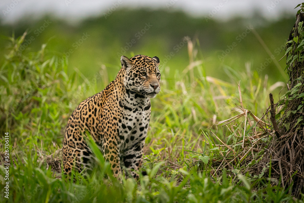 Beautiful and endangered american jaguar in the nature habitat. Panthera onca, wild brasil, brasilian wildlife, pantanal, green jungle, big cats.