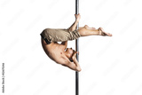 Young strong pole dance man isolated