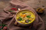 Green Curry With Chicken and blood curd and eggplant.Thai spicy soup with coconut milk ,keaw wan gai