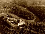 Aerial View of Dyja River and Bítov Castle in Czechia. Europe.
