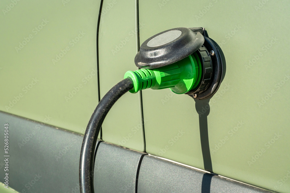 shore power - camper van or RV plugged in to external electricity source
