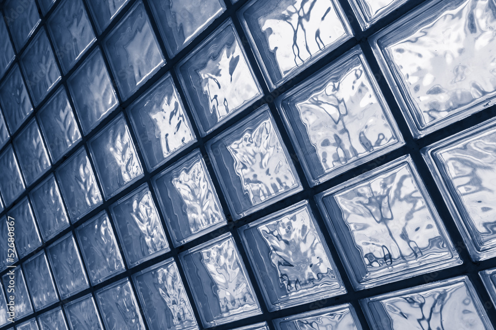 square transparent light glass block wall abstract blur background.concept for modern interior design