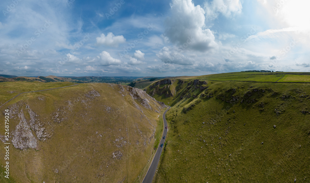 Aerial view over Winnats Pass in the Peak District - travel photography