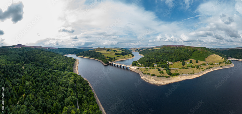 Panoramic aerial view over Ladybower Reservoir in the Peak District - travel photography
