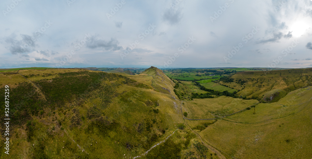 Panoramic aerial view over Peak District National Park at Chrome Hill - travel photography