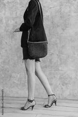 casual bag and legs of a girl in colorful shoes, indoors, day