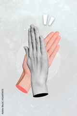 Vertical composite collage illustration of colorful black white hands clapping give high five isolated on creative background