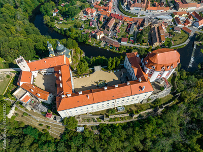 Czechia. Vranov nad Dyji Aerial View. Baroque castle and city in Moravian region in Czech Republic. Dyje river. Vranov nad Dyjí Chateau. Czechia.
