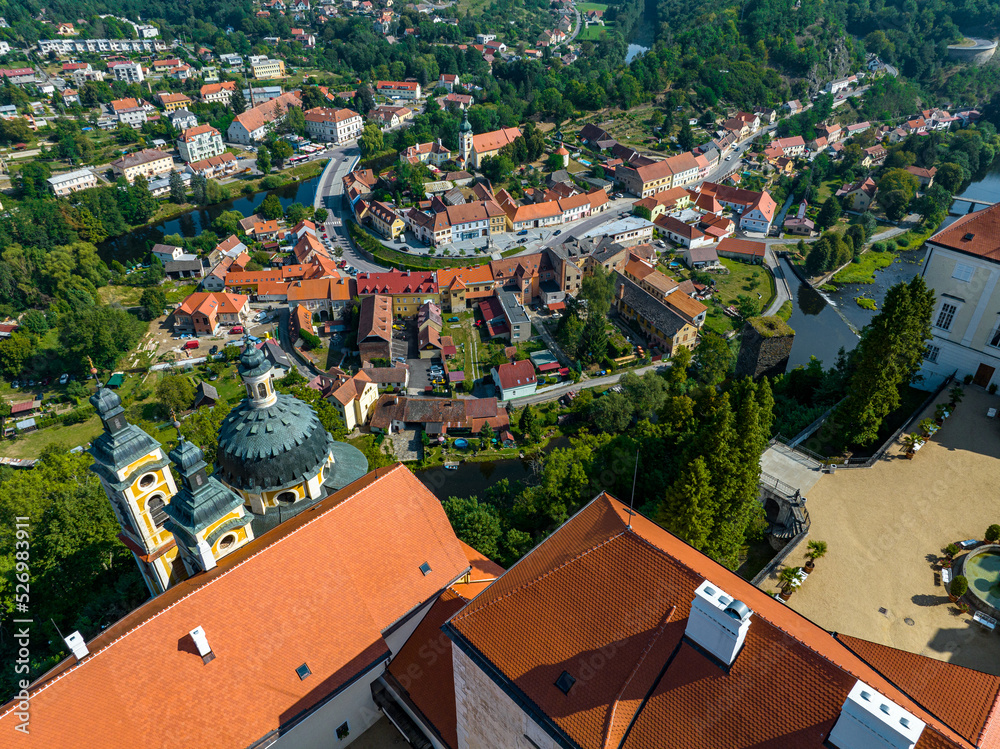 Czechia. Vranov nad Dyji Aerial View. Baroque castle and city in Moravian region in Czech Republic. Dyje river. Vranov nad Dyjí Chateau. Czechia.