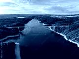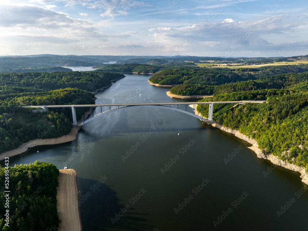 The Zdakov Bridge Steel Arch Bridge that spans the Vltava River,Czech Republic. Aerial View. Czechia, Europe.