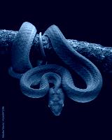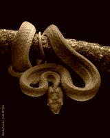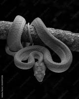 Barat Bamboo Pitviper (Trimeresurus popeiorum barati) on tree branch. Trimeresurus popeiorum barati is a venomous pitviper subspecies endemic to Indonesia.