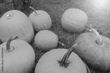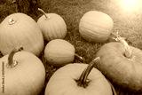 pumpkins lie on green grass