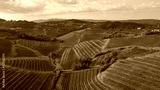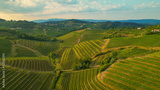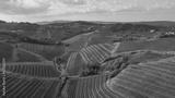 AERIAL: Beautiful cultivated wine region with vineyards and speckled farm houses