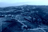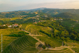 AERIAL: Picturesque wine region with vineyards and scattered small villages