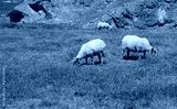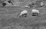 sheep and lambs grazing on the dunes