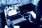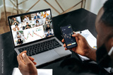 Stock exchange. Successful african american male crypto trader, holding an online video conference with multiracial colleagues, discussing and analyzing the stock market, possible risks, rise and fall