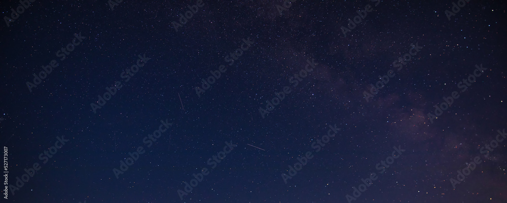 Starry sky, night landscape. View of the Milky Way galaxy.