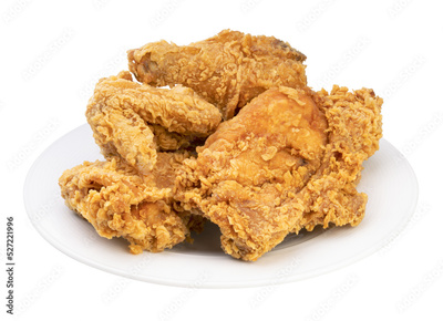 Fried chicken in white plate isolated on white background, Fried chicken on white With clipping path