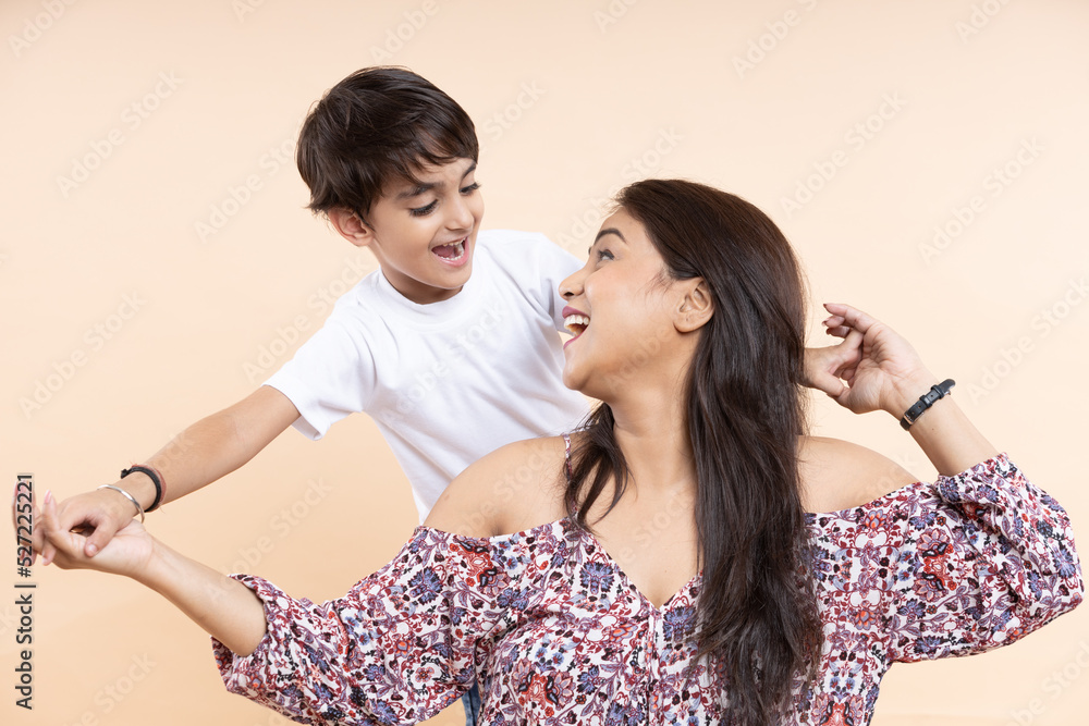 Mother having fun time with son