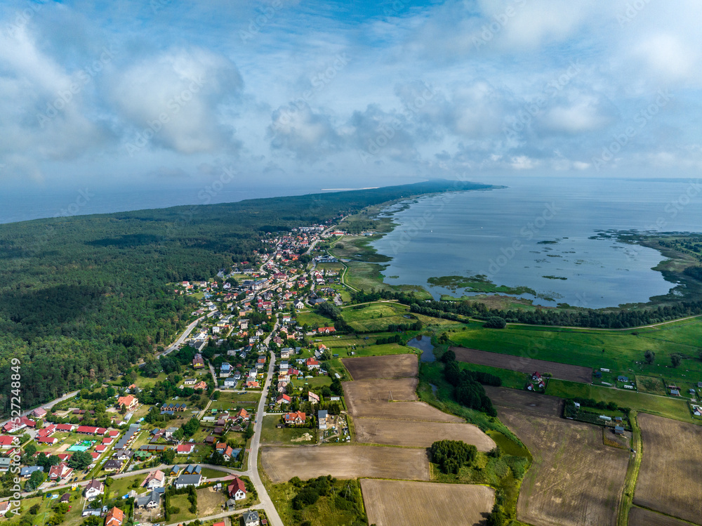 Baltic Sea and Bay of Gdańsk Aerial View. Mierzeja Wislana Landscape Park. Baltic Sea, Katy Rybackie. Poland. Europe.