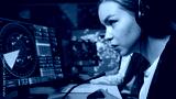 Workplace of the air traffic controllers in the control tower. Team of professional aircraft control officers works using radar, computer navigation and digital maps. Aviation concept.