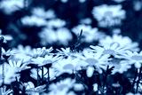 Spring blossom. Bee on the daisies in focus.