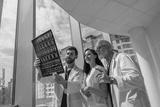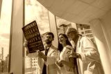 Doctor colleagues look and discuss X Ray or MRI scan of the patient spine in modern medicine clinic