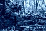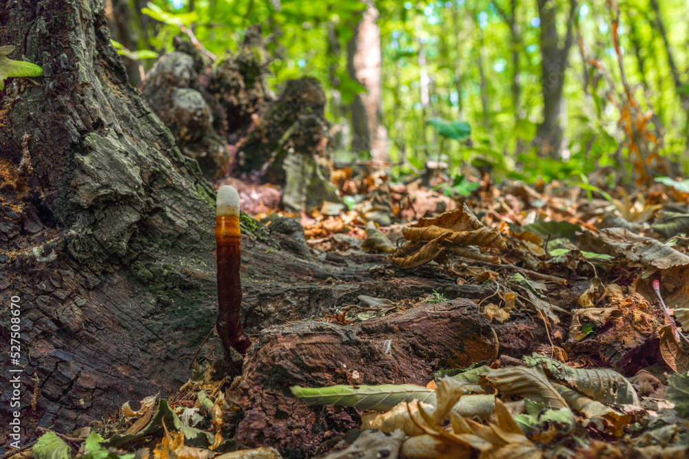 Thin parasitic mushroom in the forest