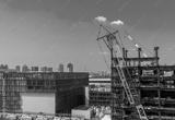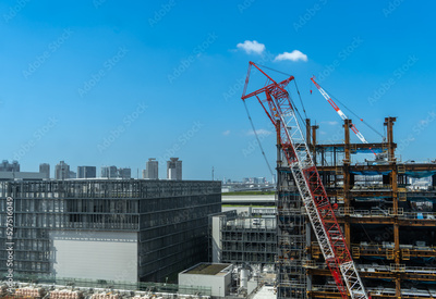 再開発進む湾岸、豊洲エリアの建設現場、クレーン車