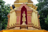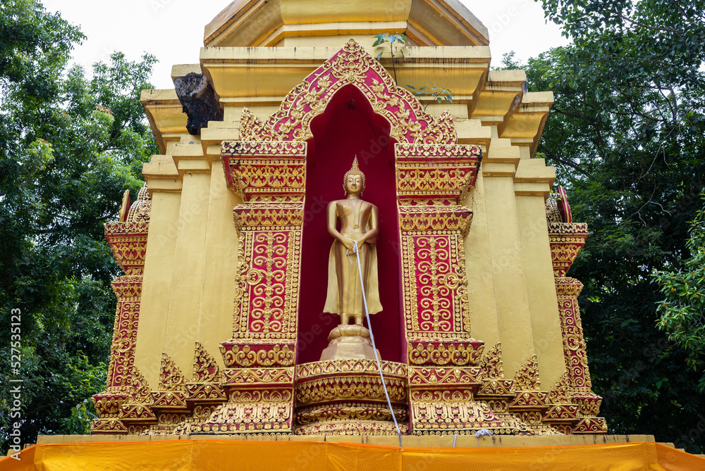 The pagoda enshrining Buddha relics in Wat Pa Mak Nor temple located on the Widow Island in Chiang Saen district of Chiang Rai province, Thailand.