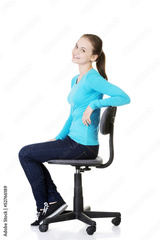 Woman sitting on a wheel chair.