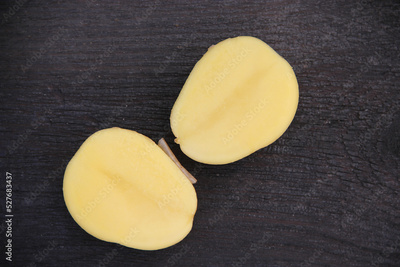 Fresh potatoes on a wooden background