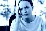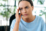 Close-up of exhausted tired sad mixed race young business woman, feels overworked, tired of working on a project, suffering migraine, headache, had stressful situation, needs a break, rest