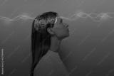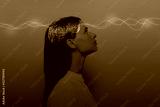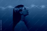 Young girl with closed eyes and neon glowing brain. Women's Mental Health and Meditation