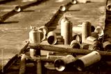 Used graffiti spray cans lay around