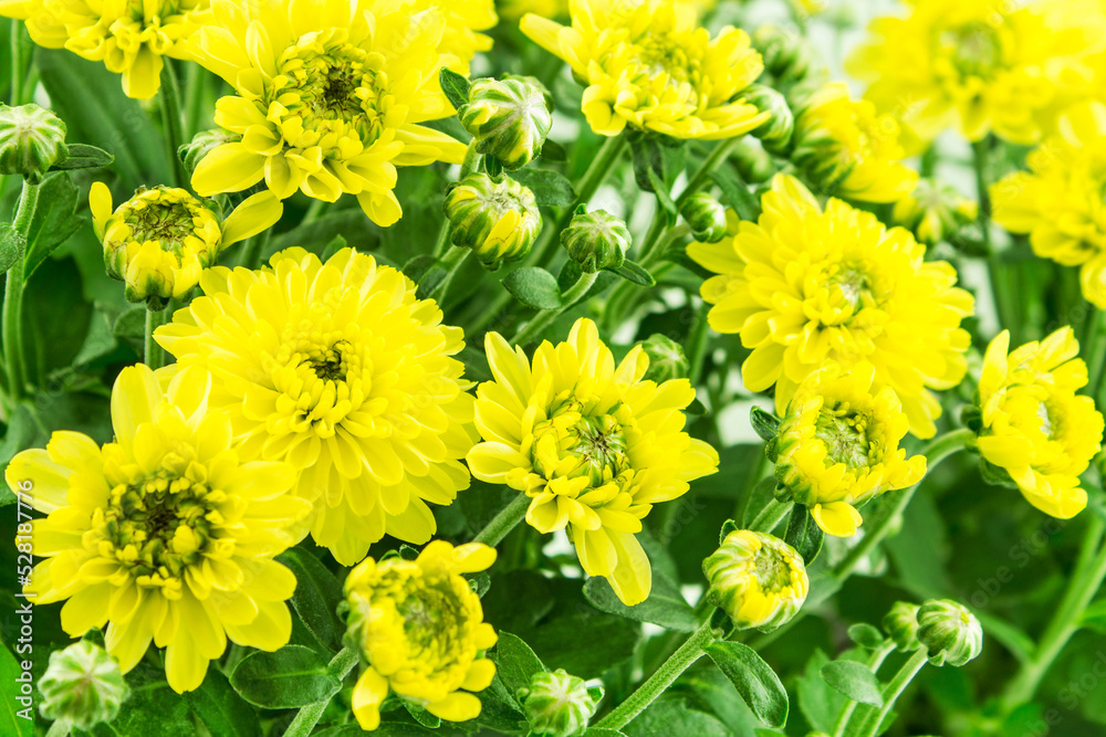 Yellow Chrysanthemum flowers close up