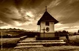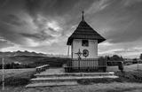 Chapel. The pass on Łapsznka, a view of the Tatras, meadows and pastures. Summer, Poland. Tatra moutains, Poland. Kaplica. Przełęcz na Łapsznką, widok na Tatry, góry, łąki i hale. Lato, Polska