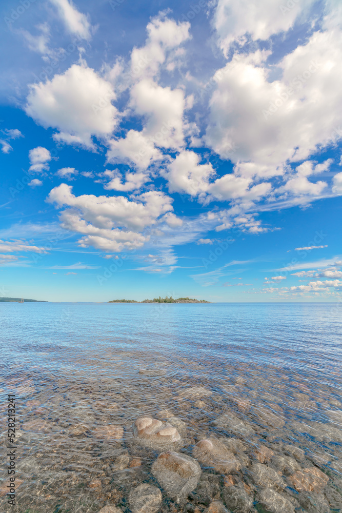 Beautiful stones on the lake. Landscape of wild nature.