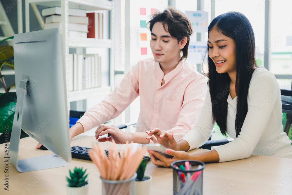 Young colleagues male and female group coworker in casual working at workspace office, Back to the office concept