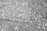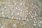 Texture, background of sidewalk, road of volcanic stones, fired bricks of gray, yellow shiny color. Top, aerial, drone view.